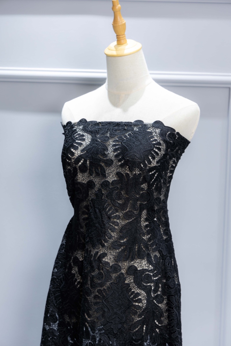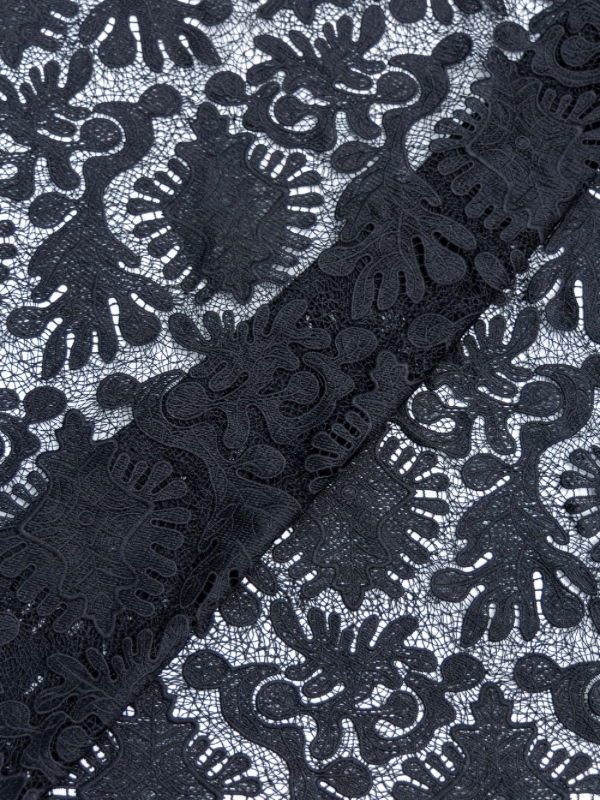 SS180505-EMB15 10% Polyester Exquisite Black Water-Soluble Guipure Lace Fabric