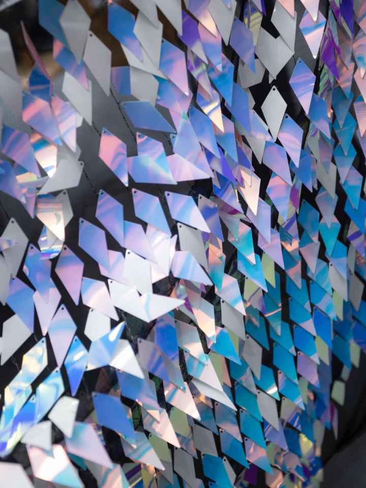 SS241018-SQ06 100%Polyester Iridescent Geometric Quadrilateral Sequins on Mesh Fabric